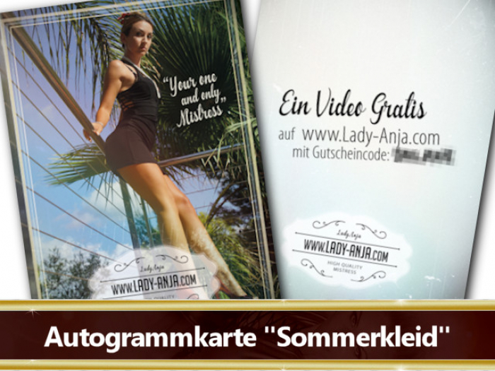 Du erhältst hier eine von mir persönlich für dich handsignierte Autogrammkarte mit dem Motiv "Sommerkleid" (Vorderseite und Rückseite bedruckt) Mit dabei ist ein Gutscheincode für ein kostenloses Video (Code ist auf die Rückseite gedruckt.
