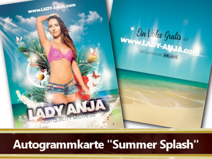 Du erhältst hier eine von mir persönlich für dich handsignierte Autogrammkarte mit dem Motiv "Summer Splash" (Vorderseite und Rückseite bedruckt) Mit dabei ist ein Gutscheincode für ein kostenloses Video (Code ist auf die Rückseite gedruckt.