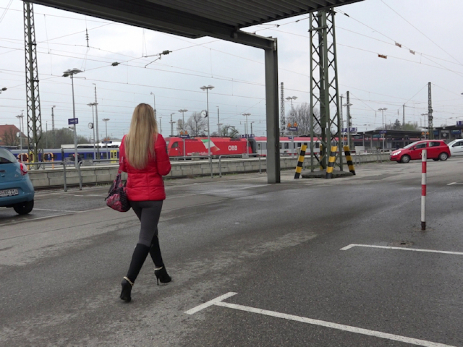 Hier siehst du mich bei meiner Lieblingsaktion – Cash & Go. Kurz, knapp, schmerzhaft und demütigend. Am Rosenheimer Bahnhof habe ich den kleinen Zahldeppen kurz und bündig, aber mit voller Hingabe und Leidenschaft, abgefertigt. Ob mich jemand gesehen hat oder nicht, interessiert mich nicht. Da ich eh auf dem Weg zu einer Shoppingtour war, kam es mir gerade gelegen.