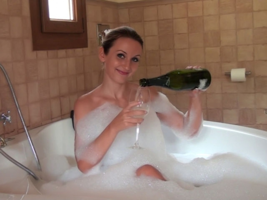 Schön noch ein Glas Sekt dazu und das Badevergnügen ist fast perfekt! Ja, es fehlt eigentlich nur noch ein Sklave, der mir das Sektglas füllt, wenn es nötig ist und der nur dazu da ist, meinen einzigartigen, wunderschönen Körper zu massieren und zu säubern. Doch wenn sich einer dazu entschließen sollte, mir so etwas anzubieten: die Grundvoraussetzung ist ein absoluter Verschluss zwischen den Beinen – mit Stahl. Plastik würde das nicht aushalten und wäre mir etwas zu unsicher. Denn ich will das Bad genießen und nichts anderes!